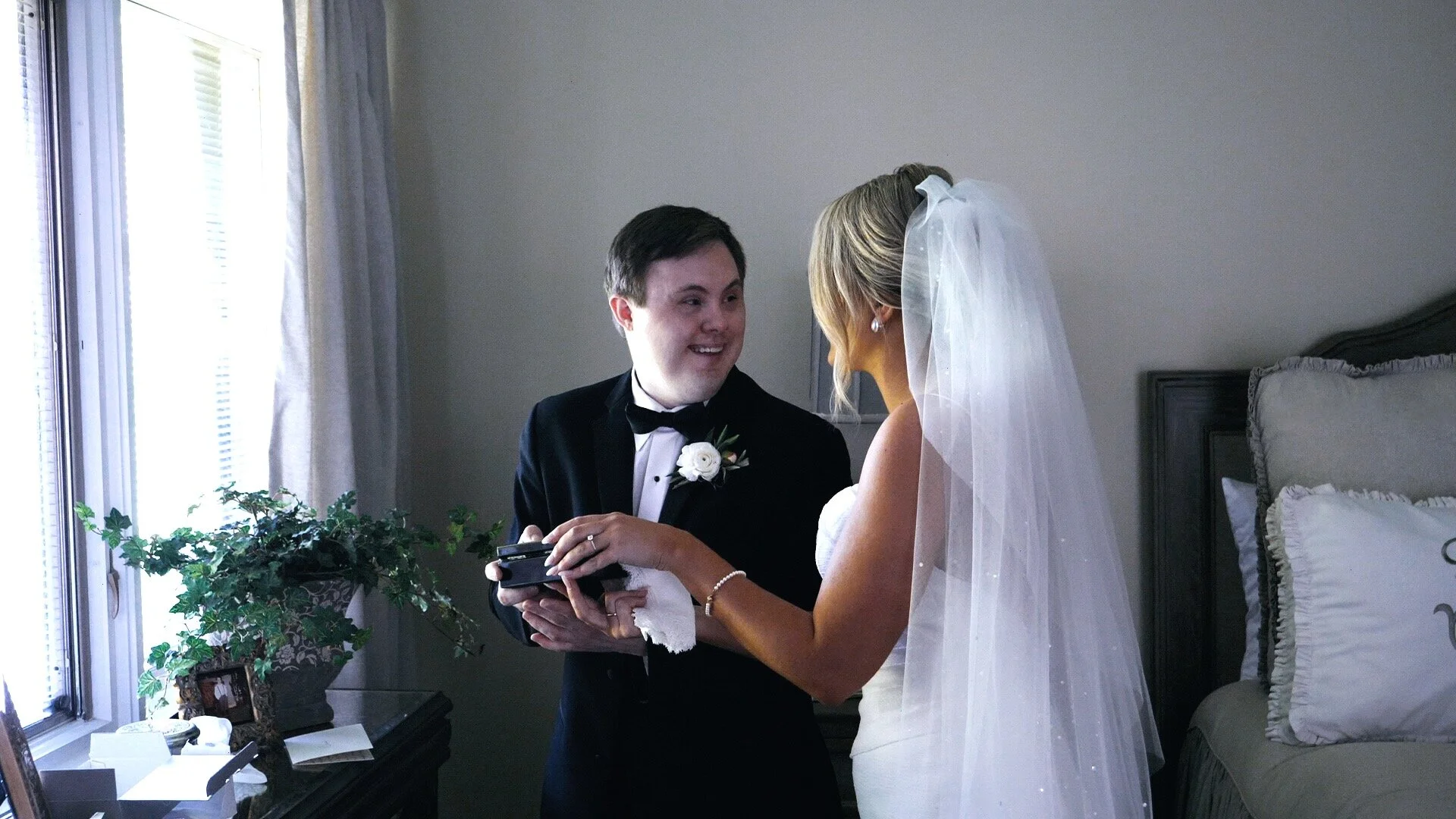 The wedding day was at Caroline’s uncle’s lakehouse in Knoxville. Caroline began the day getting ready in one part of the house and once Tim arrived at another part of the house, the excitement started to build. Tim and Caroline, after getting dressed, wrote letters to one another that would be a part of their gifts during their first look. During their first look, Tim was over the moon seeing his bride in her wedding dress.